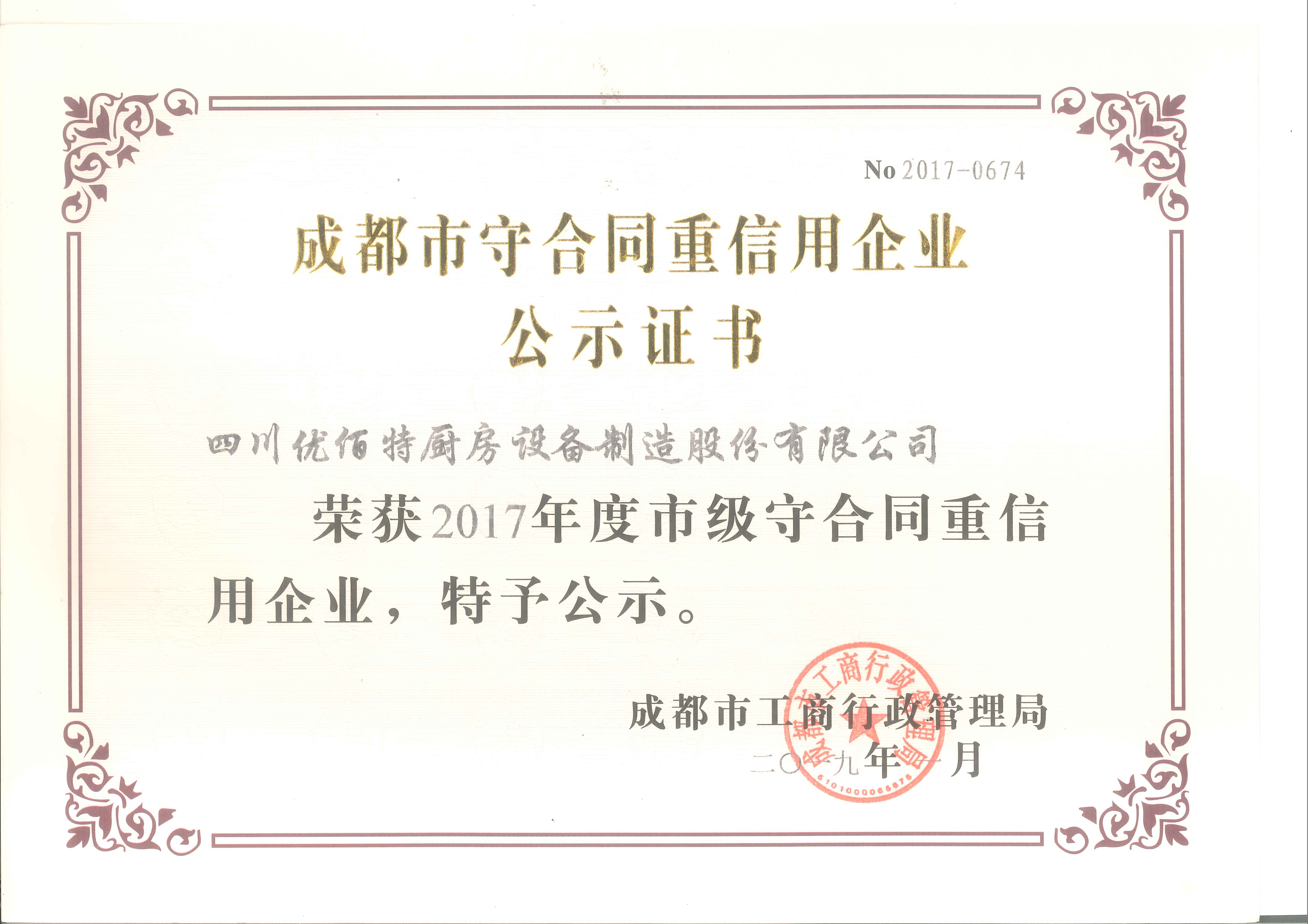 熱烈慶祝我公司榮獲2019年成都市守合同重信用榮譽(yù)證書。四川優(yōu)佰特廚房設(shè)備公司作為成都廚房設(shè)備行業(yè)的老牌生產(chǎn)機(jī)構(gòu),在其20多年的發(fā)展進(jìn)程中,一直在商用廚具領(lǐng)域深耕,認(rèn)真的做好每個(gè)產(chǎn)品的細(xì)節(jié),做好每個(gè)廚房工程項(xiàng)目.同時(shí),優(yōu)佰特在與客戶的交易過程中,也一直遵守國(guó)家相關(guān)法律的規(guī)定和合同條款的規(guī)定,絕不違返合同要求和損害客戶利益。正是,我們?cè)谶@么多年的生意中,嚴(yán)格要求自己,守合同和重信用,收獲了良好的社會(huì)口碑,也得到了社會(huì)的積極認(rèn)可,并被授予2019年成都市守合同重信用榮譽(yù)證書。