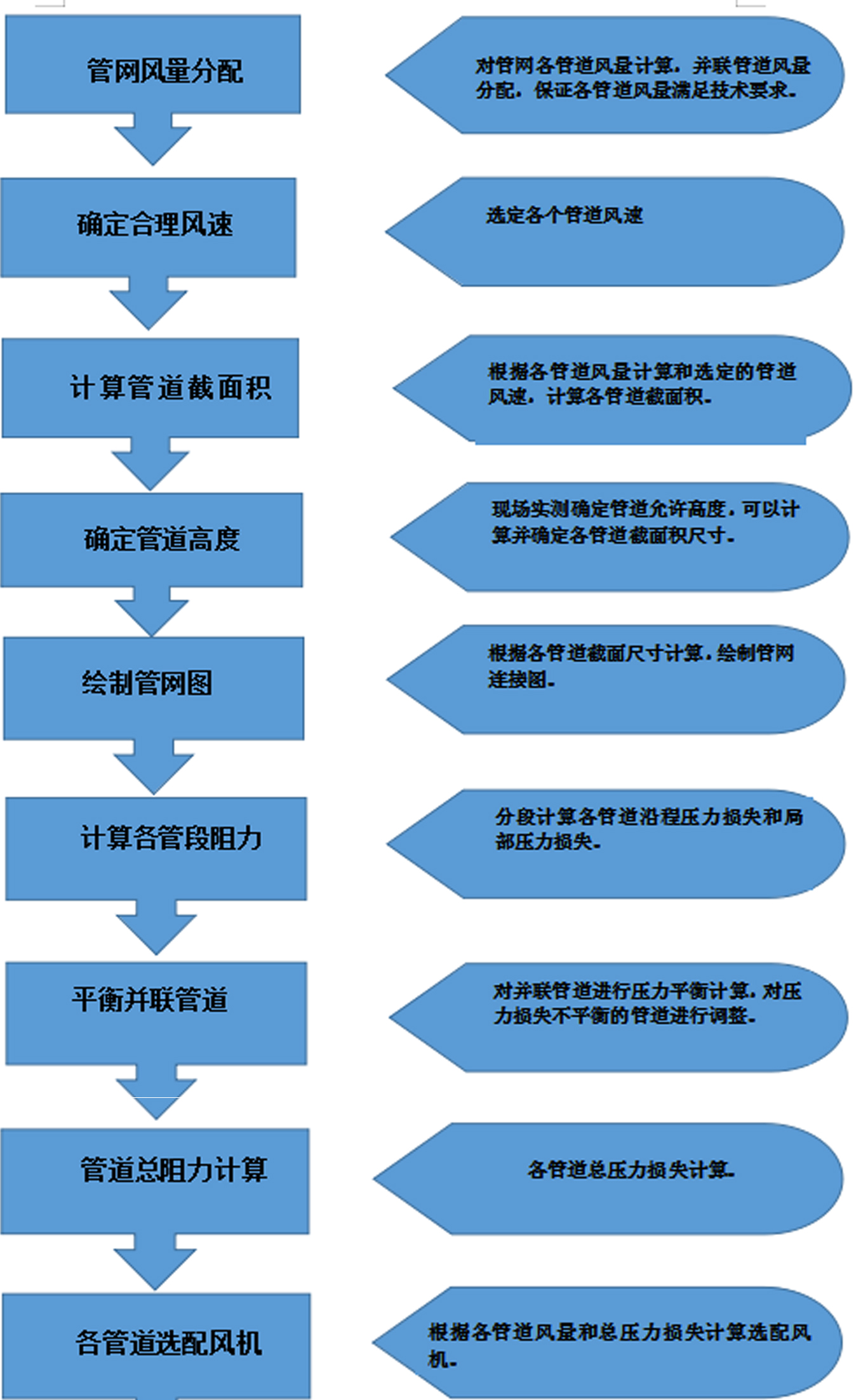 在完成管道排風(fēng)量計(jì)算、管道布設(shè)后、開始管道設(shè)計(jì)計(jì)算,可按以下步驟進(jìn)行。請見下圖。