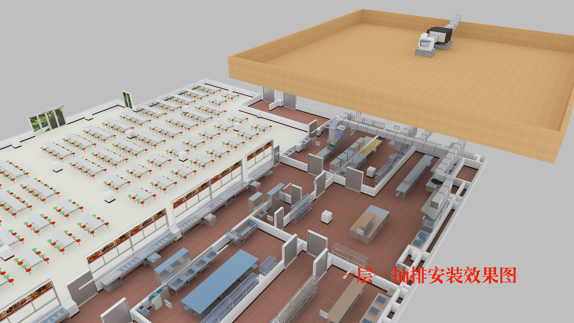 ?、茉诔榕胖饕蜔煹耐瑫r,不可忽視烤箱、蒸箱、蒸汽鍋及蒸汽消毒柜、洗碗機等產生的濁氣、廢氣,要保證所有煙氣不在廚房區(qū)域彌漫和滯留。