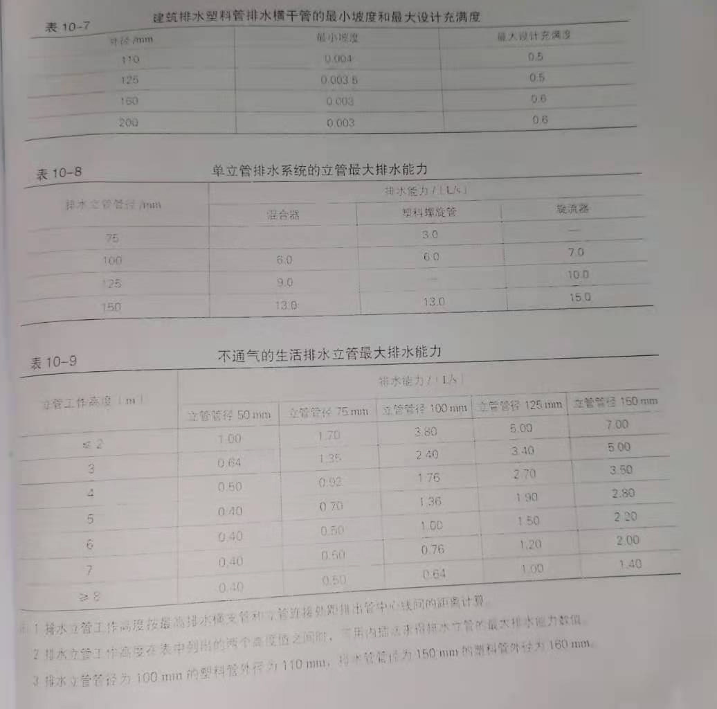 3)排水管的最小管徑、最小設(shè)計(jì)和最大設(shè)計(jì)充滿度