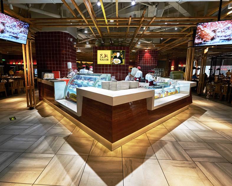 “點菜區(qū)”為了讓客人一目了然,在餐廳設(shè)立點菜區(qū),設(shè)置點菜柜、風(fēng)幕柜、熟食柜、冷藏展示柜、海鮮魚缸、貝類池等展示實物,使顧客可以親眼看到菜品或主輔料。這種“菜單式明檔”,也是一種開放的方式,占用的空間有限,中小酒店都可以應(yīng)用。
