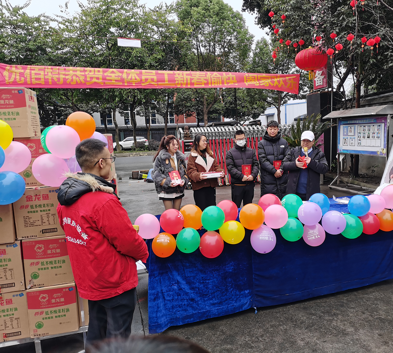 此時(shí)的優(yōu)佰特廠區(qū)已是張燈結(jié)彩,彩旗飄飄,獎(jiǎng)品堆積如山,處處充滿了迎接新春的節(jié)日氣氛!