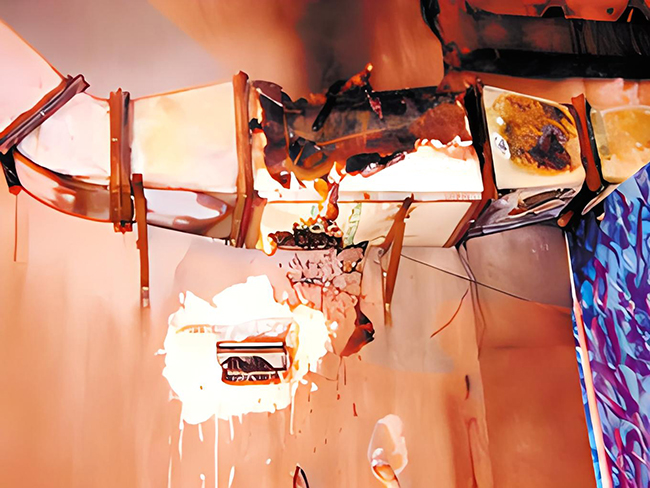 廚房設備油垢是引起煙道著火的主要因素。由于煤煙的粘性,煤煙會附著在煙囪和排煙管道內壁形成油漬,管道有彎道的地方容易附著堆積。如果長時間不清洗,油漬會越積越厚,堵塞管道。油垢本身是可燃的,遇明火或高溫會燃燒,并沿管道內壁蔓延,導致火勢擴大;油垢堵塞通道后,油煙得不到及時排出,導致煙囪和抽油煙管道溫度過高,引起油垢自燃或管道可燃包裝材料燃燒,導致火災。