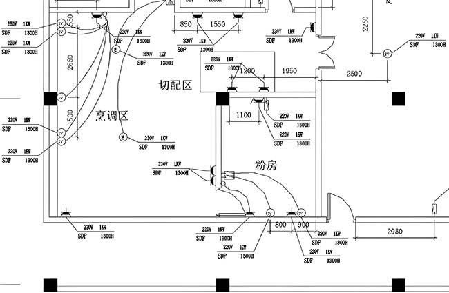 2、食堂廚房的操作間及餐廳廚房的生產(chǎn)加工間內(nèi)有電炸鍋、壓面機、水槽洗碗機等很多電器設(shè)備,包含三相負(fù)載、單相電負(fù)載、負(fù)載容積大,必須考慮到擴充及留出一定容積。