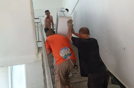 當(dāng)貨車到達(dá)工地后,無論現(xiàn)場的安裝條件怎樣的困難,也無論工地的溫度有多高,我們都會想盡辦法,把設(shè)備卸下來,然后再搬進(jìn)廚房工地。當(dāng)你在空調(diào)室抱怨空調(diào)不制冷時,在工地現(xiàn)場的師傅們可是在滾燙的天氣下大汗淋漓的搬運和安裝設(shè)備,衣服褲子全都濕透了。