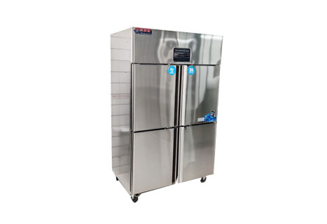 1、廚房四門冰柜(商用四門冰柜)雙機雙溫,一機兩用,上門冷藏,下門冷凍。